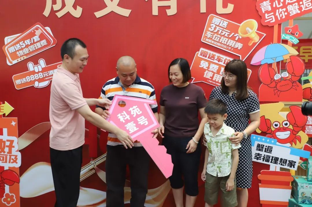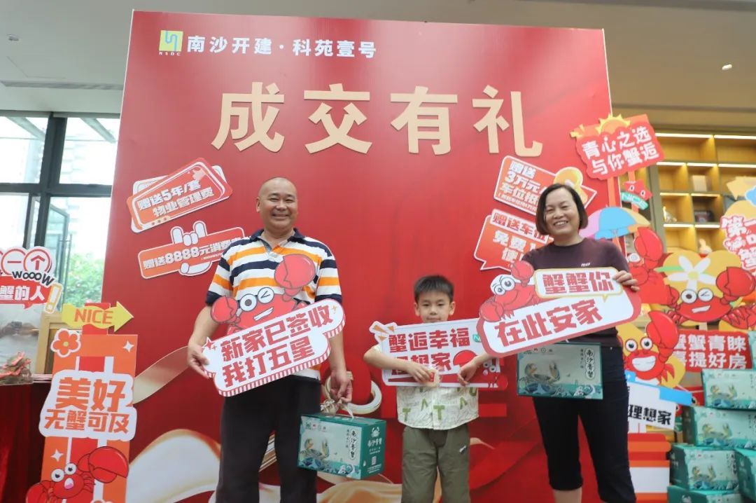 交房仪式上,港湾街道党工委主要领导将定制版“金钥匙”交到彭女士一家人手中,并为他们送上由相关部门和开发商联合准备的签约住房大礼包,包括赠送5年物业管理费、免费10年车位使用权、8888元消费券以及南沙土特产等。一家人手拿“金钥匙”,在“成交有礼”前开心地合影留念,成为南沙城中村改造房源置换新政首批“吃螃蟹”的人。“从入户宣讲到签约再到今天选房交房,整个过程很顺畅,我们觉得很安心。”彭女士表示,房源信息透明,现场也有政策咨询人员提供解答,“对未来的日子充满期待。”